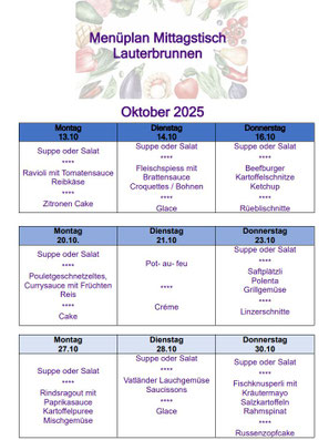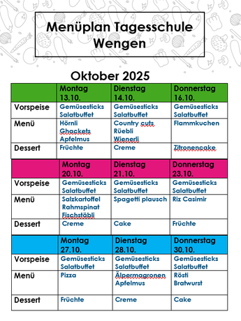 Hier finden Sie die Menüpläne für die Tagesschule Wengen und den Mittagstisch Lauterbrunnen währen den Schulzeiten.