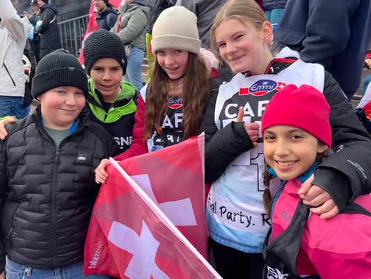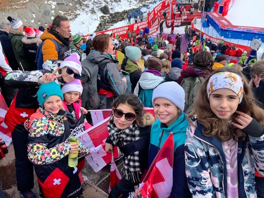 Am 13. Januar durften die Kinder unserer Schule etwas, worum sie wohl von vielen anderen Kindern benieden werden. Sie durften nämlich vom Klassenzimmer auf die Zuschauertribüne in Wengen wechseln und dort den Super G der weltbesten Skirennfahrer hautnah miterleben.