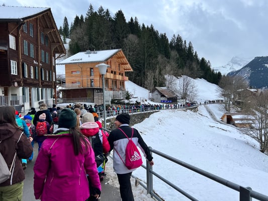 Die Kinder werden von Wengen bzw. Mürren nach Lauterbrunnen begleitet. Hinweg und Rückweg.